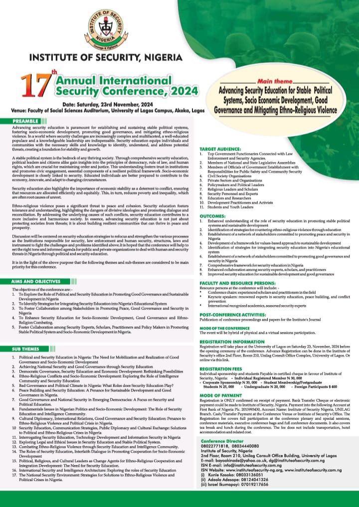 The Mission of the Institute is to undertake top-quality teaching, education, practice and training in the areas of security and risk management, protection science and safety and to disseminate knowledge to different communities and professional skill within the discipline.